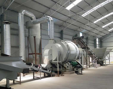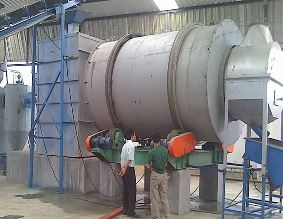 燃料可適應(yīng)白煤、煙煤、煤矸石、油、汽,能烘20-40mm以下塊料、粒料、粉狀物料。比單筒烘干機減少占地面積60%左右、土建投資降低50%左右,方便安裝。出料溫度小于60度,可直接進料庫,無需進冷卻棚冷卻。