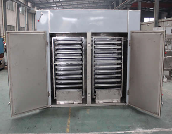 304不銹鋼梔子烘干箱:熱風(fēng)循環(huán)烘干機(jī)廣泛適用于制藥、化工、食品、輕工、重工等行業(yè)物料及無(wú)污染產(chǎn)品的加熱固化、干燥脫水,每批次加工量在100-500公斤左右。熱風(fēng)循環(huán)烘箱采用耐高溫循環(huán)風(fēng)機(jī)。通過(guò)電熱管熱的強(qiáng)制熱風(fēng)在箱內(nèi)進(jìn)行循環(huán),增強(qiáng)了熱量的傳遞,提高了水分蒸發(fā)速率,縮短了干燥時(shí)間。整個(gè)箱體采用全封閉結(jié)構(gòu),熱空氣箱內(nèi)循環(huán)。烘車、烘盤尺寸統(tǒng)一,可以互換,烘盤有平板盤、沖孔盤和網(wǎng)盤可選。有特殊要求,可定制手工盤??販鼐_。箱內(nèi)設(shè)有可調(diào)式均風(fēng)板,箱內(nèi)溫度均勻,高溫120度。采用低噪音節(jié)能型內(nèi)置式循環(huán)風(fēng)機(jī),運(yùn)轉(zhuǎn)平衡、大大的降低了設(shè)備的噪音和熱量損耗,功率為3-18千瓦每小時(shí)。