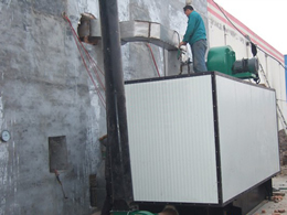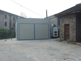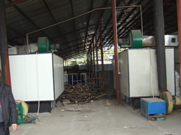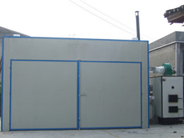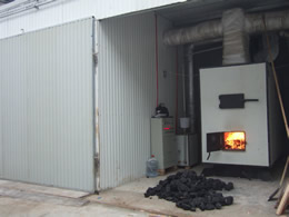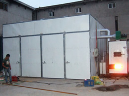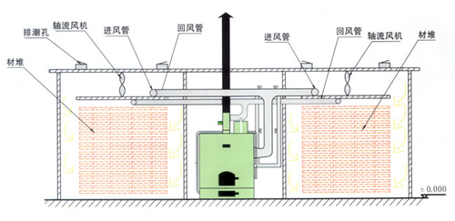 采用功能獨特的熱源發(fā)生裝置,保證有足夠的熱源供給干燥窯,干燥初期由于有大量熱源進入室內,加大室內濕度防止物料烘壞。