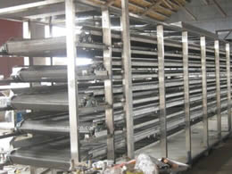 因此采用多段組合能更好地發(fā)揮網(wǎng)帶式熱風烘干機的性能,且干燥更均勻,并能使產(chǎn)量成倍提高,為用戶大批量的生產(chǎn)、取得經(jīng)濟效益提供了可靠的保障。
