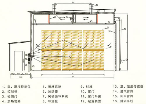 蒸汽式木材干燥窯,木材烘干窯,木材烘干房配置:鋁合金結(jié)構(gòu)窯體、窯門(提門裝置)、加熱系統(tǒng)、調(diào)濕系統(tǒng)、氣流循環(huán)系統(tǒng)、進(jìn)排氣系統(tǒng)、檢測系統(tǒng)及控制系統(tǒng)等部分組成。