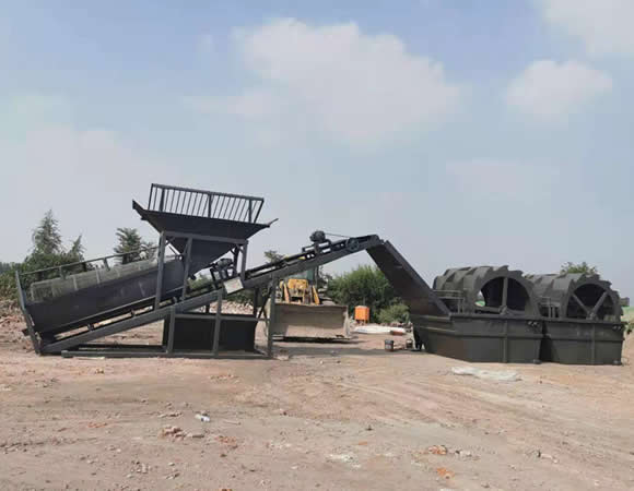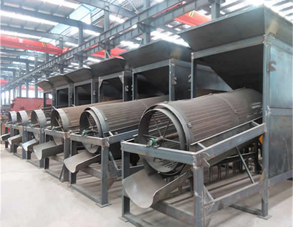 鏟車將毛料鏟入上料斗,經(jīng)傳送入轉(zhuǎn)篩,轉(zhuǎn)篩將毛料分離,沙子經(jīng)出料口傳到沙,石子經(jīng)出料口傳到石子 。