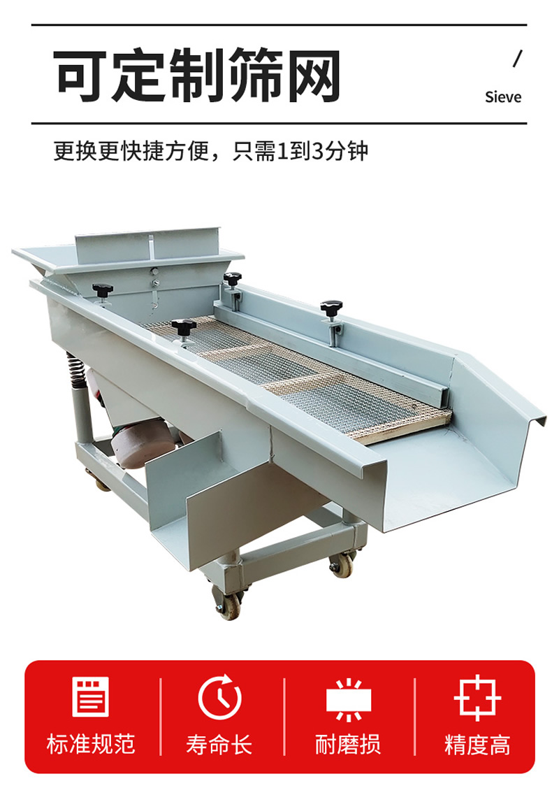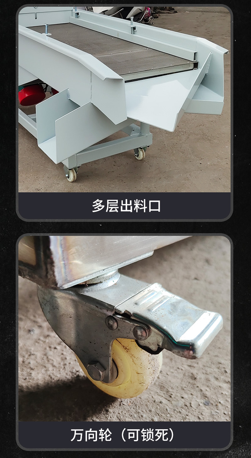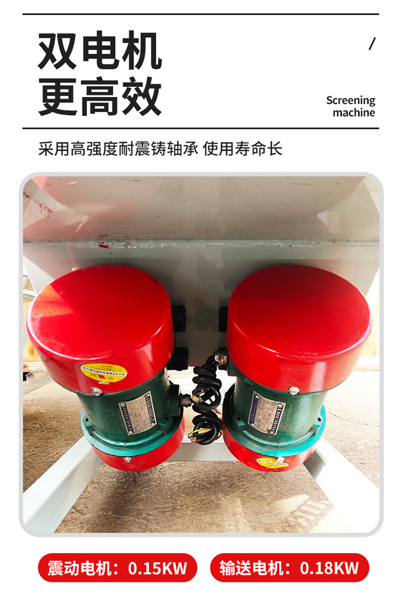 2、振動(dòng)篩選機(jī)可選用220V-2.2kw或380V-1.5kw電機(jī)做動(dòng)力源,集風(fēng)選和篩分為一體,能干凈徹底地清除糧食或油料種子里面的各種雜質(zhì)和塵土,振動(dòng)分選機(jī)由料斗、機(jī)架、傳動(dòng)機(jī)構(gòu)、風(fēng)機(jī)、風(fēng)道等五部分組成,機(jī)架地腳裝有四個(gè)輪子,方便移動(dòng);篩網(wǎng)與機(jī)架采用分體式結(jié)構(gòu),便于更換各種不同目數(shù)的網(wǎng)篩。