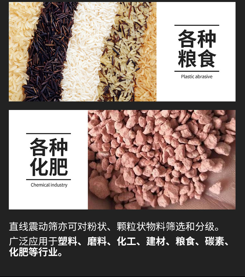1、【振動(dòng)篩分機(jī):】常用于小麥、水稻、玉米、大豆、棉種及各種油料種子的精選、分級(jí)和除雜。適合廣大種糧收糧大戶和飼料加工廠使用。,振動(dòng)篩選機(jī)篩選大豆和玉米每小時(shí)3噸,篩選小麥和水稻每小時(shí)2噸,篩選棉種和油料種子每小時(shí)500-1000公斤。對(duì)糧食和油料里面的灰塵、碎屑、壞糧及小石子等雜質(zhì),篩分率達(dá)到95%以上!。