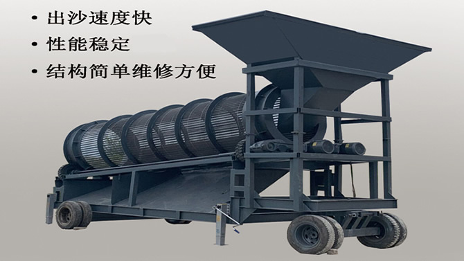 移動式砂石滾筒篩: 石子滾筒篩、圓筒篩石機一機多用。由于滾筒裝置的傾斜與轉動,使合格物料(篩下產品)經滾筒后端底部的出料口排出,不合格的物料(篩上產品)經滾筒尾部的排料口排出。本廠可定制,根據客戶篩分物料量身定制。