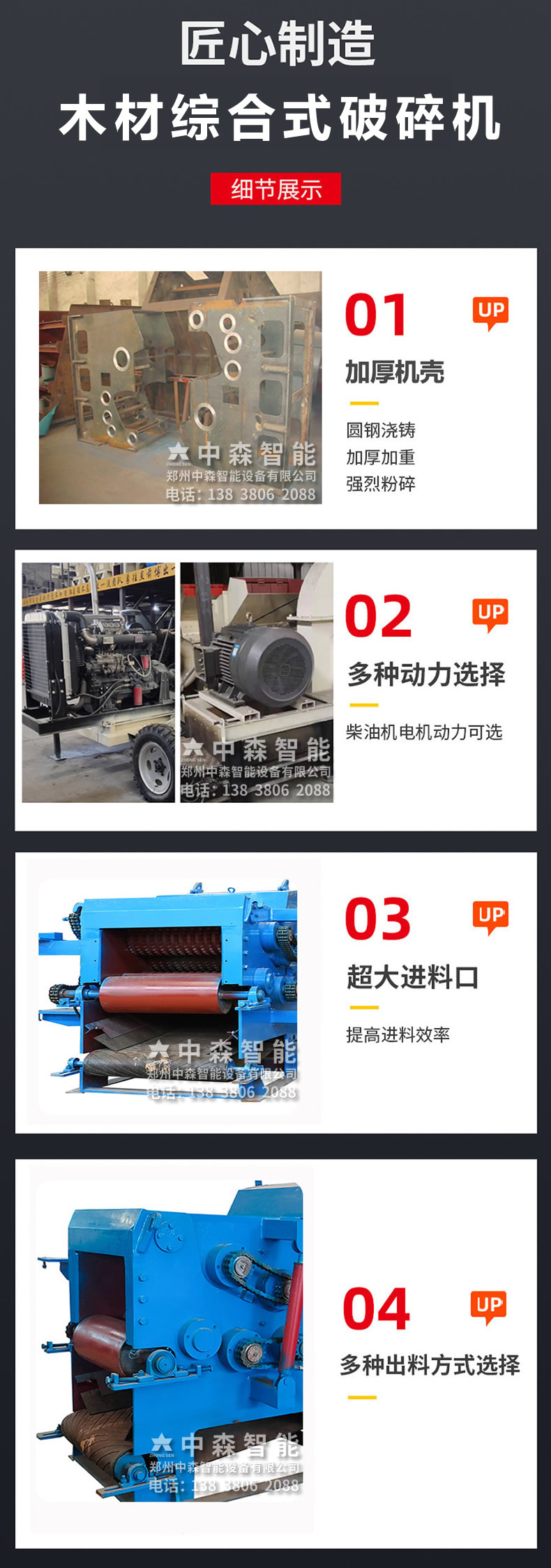 【產(chǎn)品介紹】中森智能專注木材綜合式破碎機20余年,從研發(fā)設(shè)計生產(chǎn)到銷售,現(xiàn)已形成一體化制造商以及售后服務(wù)商;木材邊角料破碎機是加工生物質(zhì)顆粒,造紙,木炭,多種板材,食用菌,生物發(fā)電,園林,木屑,有機肥等農(nóng),林,工業(yè)生產(chǎn)配套設(shè)備.可粉碎多種雜木,木材,木頭,模板,邊角料,樹枝,竹子,園林綠化,食用菌等物料。